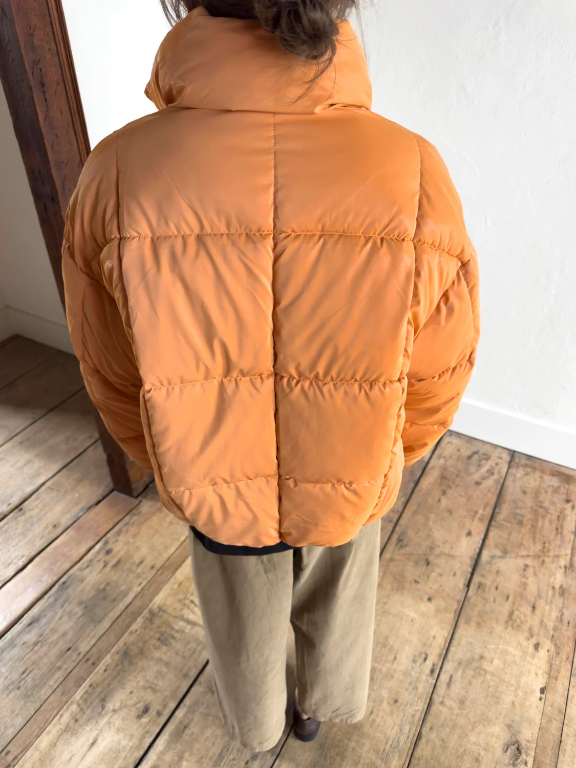 - Doudoune abricot effet brillant,