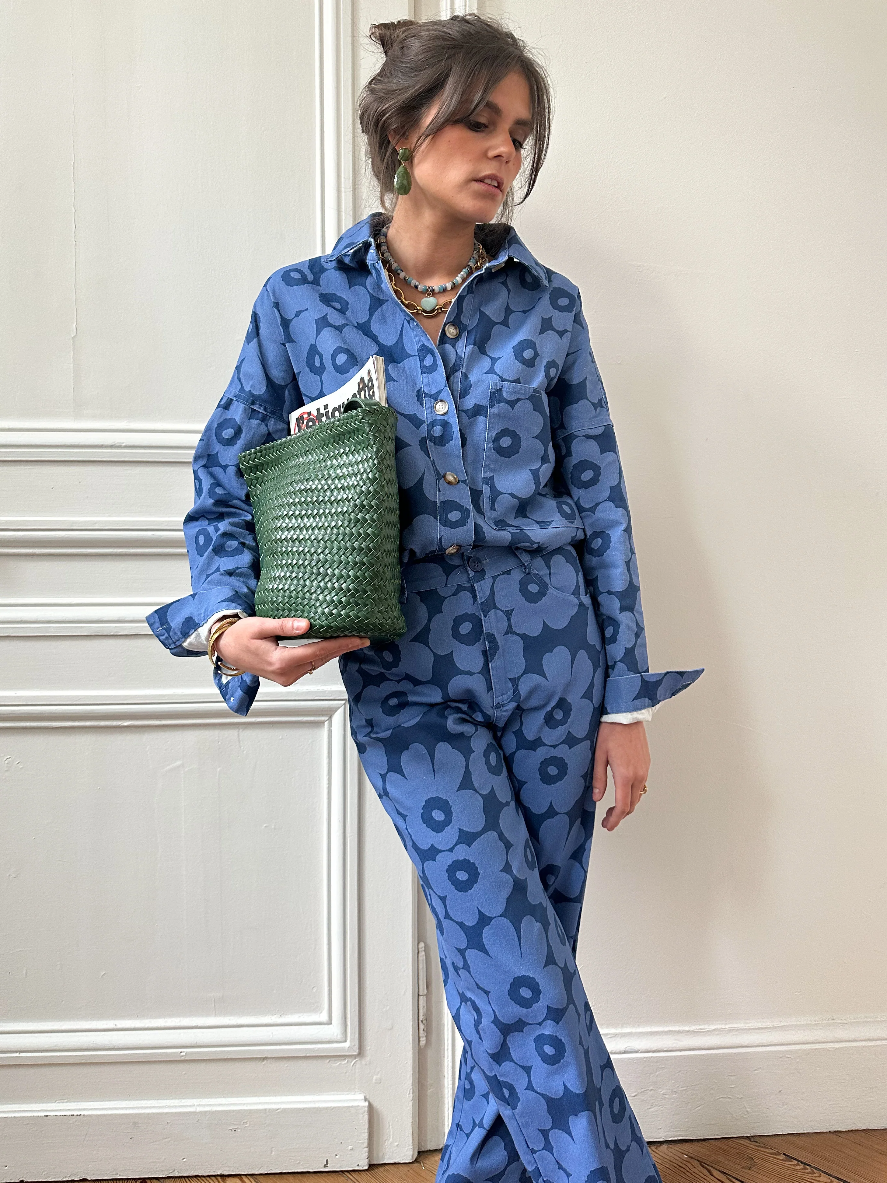 - Pantalon bleu imprimé floral,